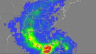 D'autres régions sont touchées. Depuis les années 1980, on avait constaté aux États-Unis qu'il existait (dans les Everglades par exemple des points chauds de pollution mercurielle ne pouvant pas être uniquement expliqué par les sources locales de pollution mercurielle (fortement réduites depuis les années 1990). Là, les analyses ont montré que le mercure actuellement introduit dans le milieu ne provenait pour l'essentiel pas des affluents ni du bassin-versant. Il ne pouvait venir que de l'air[45] ; 95 à 99 % du mercure entrant annuellement dans les Everglades y arrive avec les pluies ou brumes, à partir de l'atmosphère[3]. On a récemment trouvé du mercure oxydé réactif au-dessus de l'Atlantique tempéré, non pas aux altitudes basses typiques des régions polaires, mais surtout dans les parties supérieures de la basse atmosphère, à des hauteurs allant jusqu'à 3 000 mètres[3]. Des mesures atmosphériques faites (jusqu'à 4 000 m d'altitude) à l'observatoire de Mauna Loa (Hawaï) ont montré de grandes variations des teneurs en mercure élémentaire, et oxydé dans la colonne d'air, qui semblent en partie pouvoir être expliquée par les taux de certaines particules dans l'air (aérosols naturels ou anthropiques qui peuvent favoriser de brusques retombées de mercure[3], et interfèrent avec la nébulosité et la pluviométrie). L'exposition d'un smog à la lumière solaire en laboratoire montre que la lumière solaire active certains composés halogénés de l'air en convertissant le mercure élémentaire en mercure gazeux réactif. Les embruns marins contiennent de tels composés, ce qui pourrait expliquer certaines concentrations en mercure d'eaux marines côtières chaudes (dont en Floride)[3]. Dans l'hémisphère nord, les régions industrialisées ont émis des quantités significatives d'halogènes dans l'air, dont à partir de la décomposition des gaz réfrigérants chlorofluorocarbonés, souvent dans des régions également émettrices d'Ozone (États-Unis, Europe, Chine). Steding et A. Russell Flegal (Université de Californie) notent[46] que quand un orage et des pluies côtières se déclenchent en Californie dans une masse d'air contenant des panaches de pollution venus d'Asie, la pluie contient jusqu'à neuf fois plus de mercure. Les poissons bioaccumulent ce mercure et ils sont mangés par les alligators. Par rapport aux alligators nourris avec une nourriture artificielle, et par rapport à ceux d'autres régions, les alligators sauvages des Everglades contiennent des taux nettement plus élevés de mercure. Des doses élevées de ce métal ont été trouvées dans tous les échantillons de cerveau, moelle épinière, foie, reins, testicules, cœur, poumons, rate, muscles de 24 alligators sauvages étudiés, et à moindre dose dans leurs ovaires, oviductes, écailles de la queue et des pattes. Dans les muscles (avec d'autres contaminants, organochlorés notamment, dont DDE[47], DDD[47], DDT[47], dieldrine[47], heptachlore[47], lindane[47] et PCB[47], les taux de mercure dépassaient la norme pour l'État (0,50 à 1,50 ppm) et fédérale (1,00 ppm) pour les aliments destinés à l'Homme. Aucun signe de troubles neurologiques, hépatiques ou rénaux ne sont cependant visibles chez ces alligators, qui pourraient être utilisés comme bioindicateurs de contamination de l'environnement par le mercure[48],[49],[50]