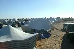 Le , plusieurs dizaines de personnes installent des tentes, en signe de protestation contre leurs conditions de vie, au camp Gdim Izik, à 12 km à l'est de Laâyoune, Chef-lieu de la région de Laâyoune-Boujdour-Sakia el Hamra dans la direction de la ville de Es-Semara, ville du Sahara occidental contrôlée par le Maroc. Après quelques semaines, ils étaient jusqu'à 3 000 tentes abritant 15 000 personnes selon les observateurs des Nations-Unies. Selon les sources marocaines, les revendications étaient exclusivement d'ordre socio-économique (logements, emplois dans la fonction publique, distribution des cartes de l’Entraide nationale[4]). Sur cette base, un dialogue a été établi avec les autorités[5].
