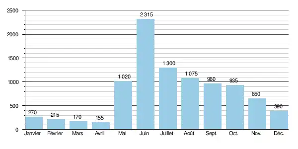 | Mois | jan. | fév. | mars | avril | mai | juin | jui. | août | sep. | oct. | nov. | déc. | année |