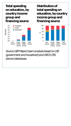 D’autres dimensions de l’apprentissage doivent être prises en considération aussi. Il s’agit notamment des retombées pour la société (par exemple le fait que soient encouragés les comportements propices à un développement social et environnemental durable, la citoyenneté mondiale, le vivre-ensemble et le respect de la diversité) ainsi que l’environnement offert par les écoles et les salles de classe. Ce dernier paramètre comprend le processus d’enseignement-et d’apprentissage, la présence d’enseignants convenablement formés et motivés, ainsi que la rigueur du processus pédagogique, la capacité de l’école d’exercer un vigoureux leadership, la participation de la communauté et le caractère démocratique de la gouvernance, ainsi que des structures et intrants matériels adéquats[13].