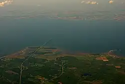 Littoral de l'île Jourimain, avec le pont au fond à droite | ||