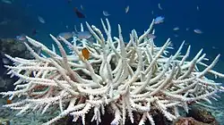 Les récifs coralliens sont menacés par de nombreux impacts anthropiques, dont certains ont déjà des effets majeurs dans le monde entier[7]. Les récifs poussent dans des eaux peu profondes, chaudes et pauvres en nutriments où ils ne sont pas supplantés par le phytoplancton . L'apport d'engrais dans l'eau de ruissellement, peut faire croître considérablement les populations de phytoplancton et étouffer les systèmes de récifs coralliens. L'ajout de trop de sédiments peut causer un problème similaire en bloquant le soleil, affamant les zooxanthelles qui vivent sur le corail, ce qui lui fait subir un processus connu sous le nom de blanchissement du corail .