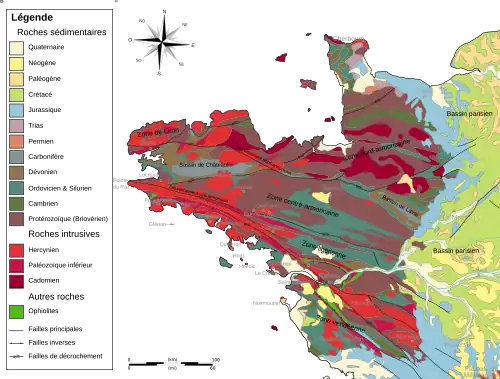 La ceinture de leucogranites de la virgation ibéro-armoricaine.Noirmoutier fait partie de la ceinture de leucogranites de l'Ouest de la France.