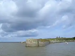 L'île abrite un port dans la partie sud, assez pratique car protégé par un môle maçonné s'élevant au-dessus du niveau des plus hautes mers. Ce môle fut construit en 1880[15] et rénové dans les années 1950. Il est actuellement assez délabré à la suite de la tempête de 2008, en éboulement sur la partie intérieure.