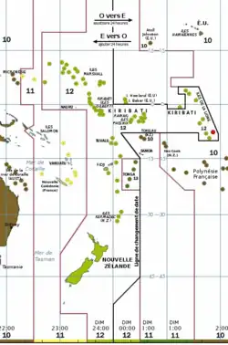 - ↑ (en) Nicholas D. Kristof, « Tiny Island's Date-Line Jog in Race for Millennium », The New York Times, (lire en ligne)