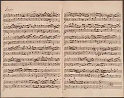 | BWV 596 | Concerto n°5 | Ré mineur | allegro — grave — fuga, largo e spiccato — finale allegro | Adaptation du concerto grosso (RV 565) d'Antonio Vivaldi, parfois considéré comme le plus réussi des concertos[61]Un manuscrit du XVIIIe siècle , conservé à la Bibliothèque d'État de Berlin, attribue cette transcription à Wilhelm Friedemann Bach[62]. |