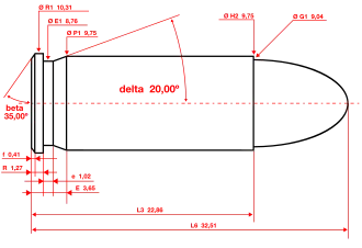 | .38 super auto | 9,04 | .356 | 32,51 | 22,86 | 8-10 | 124-154 | 370 | 430 | 570 | 740 | 130 | 370 | 580 | 3,12 |