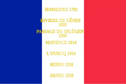 Jemmapes 1792 Rivière de Gênes 1800 Passage du Splügen 1800 Mayence 1814 L'Ourcq 1914 Reims 1918 Arnes 1918 |