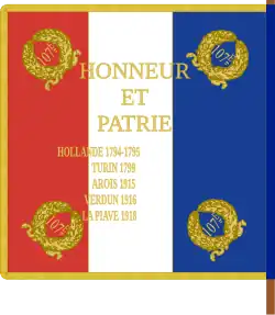 - ↑ Décision no 12350/SGA/DPMA/SHD/DAT du 14 septembre 2007 relative aux inscriptions de noms de batailles sur les drapeaux et étendards des corps de troupe de l'armée de terre, du service de santé des armées et du service des essences des armées, Bulletin officiel des armées, no 27, 9 novembre 2007
