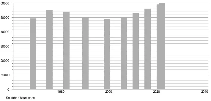 - ↑ Population municipale de référence en vigueur au 1er janvier 2025, millésimée 2022, définie dans les limites territoriales en vigueur au 1er janvier 2024, date de référence statistique : 1er janvier 2022.