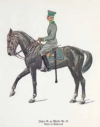 Au cours de la guerre 1914-1918, l'unité de cavalerie a été ventilée dans des divisions d'infanterie, la 33e, la 34e, la 91e, la 121e et la 1re division de Landwehr.