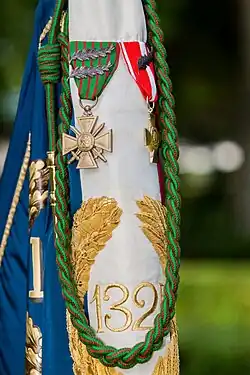 - ↑ Décision no 12350/SGA/DPMA/SHD/DAT du 14 septembre 2007 relative aux inscriptions de noms de batailles sur les drapeaux et étendards des corps de troupe de l'armée de terre, du service de santé des armées et du service des essences des armées, Bulletin officiel des armées, no 27, 9 novembre 2007