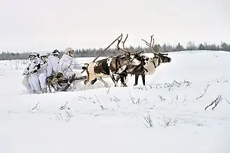 - La 80e brigade en motoneiges, sur skis, en traineaux à chiens ou à rennes