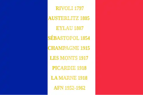 Rivoli 1797 Austerlitz 1805 Eylau 1807 Sébastopol 1855 Champagne 1915 Les Monts 1917 Picardie 1918 La Marne 1918 AFN 1952-1962 |