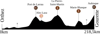 La majorité de l'étape se déroule dans le département des Pyrénées-Atlantiques, sauf un court passage par la Communauté forale de Navarre en Espagne. Voici la liste des principaux sites traversés lors de l'étape (avec les principales difficultés en italique):