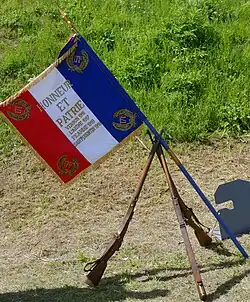 - ↑ Décision no 12350/SGA/DPMA/SHD/DAT du 14 septembre 2007 relative aux inscriptions de noms de batailles sur les drapeaux et étendards des corps de troupe de l'armée de terre, du service de santé des armées et du service des essences des armées, Bulletin officiel des armées, no 27, 9 novembre 2007