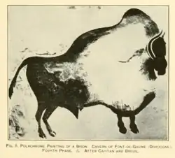 - Vers 15 000 AP : bison couvert de points rouges de la grotte de Marsoulas en Haute-Garonne[38].