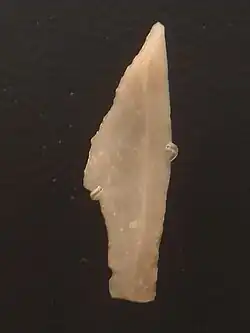- 15 700 AP : objets de pierre des grottes de Bluefish près de Old Crow dans le Yukon : assemblages de « micro-lames » insérées dans des sillons creusés dans des pointes d'os pour faire des têtes d'épieux. D'autres sites de la région ont également été datés entre 13 700 et 13 100 ans[11]. Cette technique est originaire de Sibérie et vieille de 30 000 ans, ce qui confirme les migrations par le détroit de Béring.