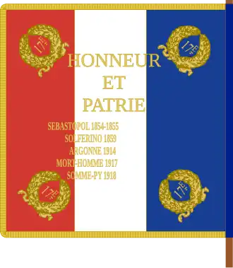 - ↑ Décision no 12350/SGA/DPMA/SHD/DAT du 14 septembre 2007 relative aux inscriptions de noms de batailles sur les drapeaux et étendards des corps de troupe de l'armée de terre, du service de santé des armées et du service des essences des armées, Bulletin officiel des armées, no 27, 9 novembre 2007