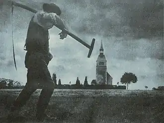 - Nicola Perscheid, Der Schnitter [Le faucheur], photographie en gomme bichromatée bleu-noir de dimensions, 43,1 × 56 cm, publiée dans la revue Photographisches Centralblatt.