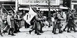 - 27 janvier, Syrie : la grève générale est décrétée à Damas par le Bloc national. Le pays est paralysé pendant 36 jours. La France impose la loi martiale et procède à de nombreuses arrestations, mais doit céder en février[44]. Elle renvoie le gouvernement Taj al-Din, libère les prisonniers et ouvre des négociations avec le Bloc national. Le 1er mars, le Haut-Commissaire Damien de Martel s’engage à rétablir la vie constitutionnelle, à favoriser l’unité de la Syrie et à conclure un traité analogue au traité britanno-iraquien de 1930. Les négociations s’ouvrent en avril à Paris et sont interrompues jusqu’à l’été en raison des élections françaises du printemps[43].