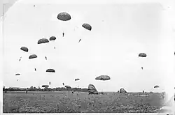 - En 1939, alors que débute le second conflit mondial, le 601e GIA s'installe à la base aérienne de Pujaut (Gard) et le 602e GIA à Montélimar[8]. Réunis, ils constituent un Groupement d'Infanterie de l'Air qui est placé en réserve générale. En mars 1940, ils forment une compagnie de marche qui effectue des missions de corps franc au profit de la 28e division alpine. Le , le groupement est replié à la Maison Blanche, proche d'Alger. Il est dissous le sans avoir effectué de saut opérationnel.
