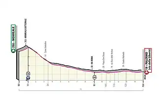 Champion du monde de la spécialité, Filippo Ganna (Ineos) remporte le contre-la-montre inaugural, avec 22 secondes d'avance sur João Almeida (Deuceninck-Quick Step) et Mikkel Bjerg (UAE Emirates). Ganna s'empare ainsi des maillots roses, cyclamens et blancs. 4e de l'étape à 23 secondes, Geraint Thomas (Ineos) est le meilleur temps des favoris, en devançant Simon Yates (Mitchelton-Scott) de 26 secondes. Les rivaux des deux britanniques se sont élancés dans les dernières positions et ont subi ainsi des conditions météorologiques plus difficiles, avec un vent plus fort. Ilnur Zakarin (CCC Team) concède 1 minute 05 par rapport à Thomas, Wilco Kelderman (Sunweb) 1 minute 05, Vincenzo Nibali (Trek-Segafredo) 1 minute 06, Steven Kruijswijk (Jumbo-Visma) 1 minute 21, Jakob Fuglsang (Astana) 1 minute 24 et Rafał Majka (Bora-Hansgrohe) 1 minute 37. Victime d'une chute lors du chrono, Miguel Ángel López (Astana) est contraint à l'abandon.