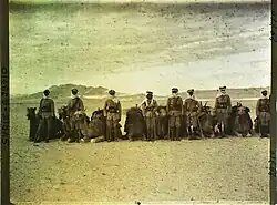 La compagnie méhariste rassemblée à Palmyre en octobre 1921 (autochrome d'époque). | |