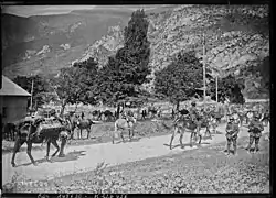 Train muletier et tirailleurs de la 1re DINA (6e RTM) en manœuvres en Maurienne en septembre 1930. | |