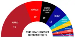 En 1948, à la création d'Israël, sa déclaration d'indépendance prévoit « la mise en place [d']institutions élues et régulières de l'État [...] conformément à la Constitution qui sera établie par l'assemblée constituante élue »[1]. Des élections ont lieu le , après avoir été retardées par la guerre israélo-arabe de 1948-1949. 87 % de participation sont enregistrés, soit 430 000 votants. Elles donnent les résultats suivants : le Mapaï remporte 46 sièges, le Mapam 19 sièges, le Front religieux uni (Hazit Datit Meukhedet) 16 et le Hérout 14. Les autres sièges se répartissent entre d'autres plus petits partis[2].
