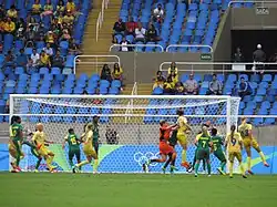 - ↑ (fr) « JO 2016 : Suède-Afrique du sud ouvre les Jeux dans un stade quasiment vide », sur sport24.lefigaro.fr,