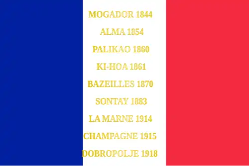Mogador 1844 Alma 1854 Palikao 1860 Ki-Hoa 1861 Bazeilles 1870 Sontay 1883 La Marne (1914) Champagne 1915 Dobropolje 1918 Koweit 1990-1991 |