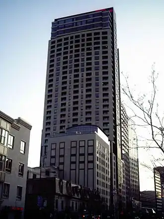 Sur le même modèle que l'Hôtel Le Crystal, l'édifice mélange habitations, dans son appendice de 22 étages, et un hôtel, l'occupant de cette dernière partie étant le groupe Hilton.
