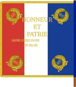 - ↑ Décision no 12350/SGA/DPMA/SHD/DAT du 14 septembre 2007 relative aux inscriptions de noms de batailles sur les drapeaux et étendards des corps de troupe de l'armée de terre, du service de santé des armées et du service des essences des armées, Bulletin officiel des armées, no 27, 9 novembre 2007