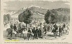 - – les escadrons de combat s'initient quant à eux au milieu montagnard, dans les Vosges puis à Gap (Hautes-Alpes), Chamrousse (Isère) et Modane (Savoie), accueillis ici dans les infrastructures de bataillons de chasseurs alpins. Lors de ces stages, des brevets d'aptitude montagne sont décernés. Le 2e escadron effectue même un stage commando au camp des Rousses (Jura) en . Cet aguerrissement montagne constitue en quelque sorte un retour aux sources puisque, il faut le rappeler, le 6e dragons a stationné par deux fois à Chambéry aux alentours de 1870.