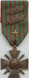 avec deux citations à l'ordre de l'armée (deux palmes) puis une citation à l'ordre du corps d'armée (étoile de vermeil).