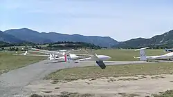 - une piste en herbe longue de 700 m et large de 80, réservée aux planeurs et aux largueurs de parachutistes pour leur atterrissages. Elles sont situées de part et d'autre de la mini piste bitumée. ;