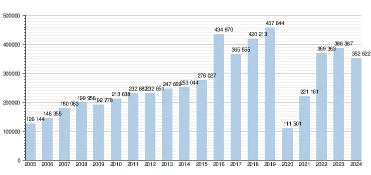 Le cap des 200 000 passagers sera franchi pour la première fois en 2010. Ensuite, l'aéroport connaîtra une augmentation sensible et constante du nombre de passagers d'année en année.