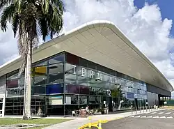 L'aéroport est desservi par les lignes AE1, AE3, AE4, AE5 et Z2 du réseau Karu'Lis qui permettent aux voyageurs de rejoindre les villes limitrophes de l'agglomération pointoise (Abymes, Pointe-à-Pitre, Le Gosier et Baie-Mahault)[54] grâce aux correspondances avec les lignes interurbaines, notamment celles des communes du Nord Grande-Terre.