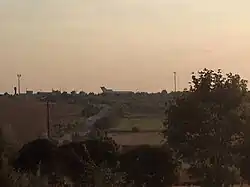 Vue de la route à grande vitesse M5 sur l'aéroport international de Bălți, situé sur une colline de 231 mètres de haut.