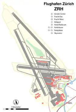Vue générale de l'aéroport de Zurich. | ||||||||||||||||