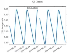 - ↑ (en) AX Circini sur la base de données Simbad du Centre de données astronomiques de Strasbourg.