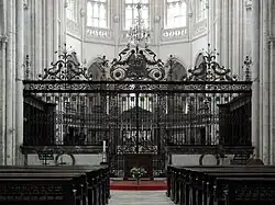 Les chapelles rayonnantes ont toutes reçu la même décoration : boiseries de chêne sculptées laissant place à un tableau et une grille de fer forgé.