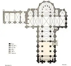 Des fouilles faites en 1968-1969 ont permis de trouver le plan initial du chevet de l'abbatiale. Sa similitude avec celui de l’abbaye de Conques ont permis d'établir qu'elle a été construite au milieu de XIe siècle. La composition du portail sud, archaïque, le fait réaliser vers 1100. On place la réalisation des chapiteaux du portail occidental au milieu du XIe siècle. L'architecture des parties hautes de l'abbatiale avec des arcs brisés des tours les situerait au plus tôt dans le deuxième quart du XIIe siècle. Les piles cruciformes du porche, fortement désaxées et dépourvues de colonnes engagées, pourraient être les vestiges d'une église du XIe siècle. Le style des chapiteaux de la salle capitulaire permet de les dater du milieu du XIIe siècle. Les chapiteaux du cloître déposées le font dater du XIIe siècle.