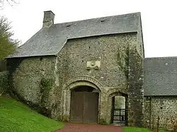 Sur l'ancien porche, on relevait les armoiries de la famille des fondateurs, les Paynel ou Paisnel : d'or à deux fasces d'azur à une orle de merlettes de gueules alias d'or à deux fasces d'azur à neuf merletles de gueules, 4, 2, 3[8].
