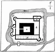 La région étant peu sûre, l'abbaye adopte le plan d'un château fort entouré de douves, le côté méridional étant naturellement protégé par l'Amme (et), qui permettait en outre l'implantation d'un moulin à eau, placé à l'angle sud-ouest de l'édifice[3].