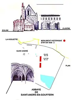 - 1 2 3 « Abbaye de Saint-André-de-Gouffern », notice no PA00111388, sur la plateforme ouverte du patrimoine, base Mérimée, ministère français de la Culture.