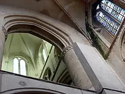 Elle fut construite à la fin du XIIIe siècle dans le style gothique. Elle se distingue par les proportions imposantes de ses baies flamboyantes.