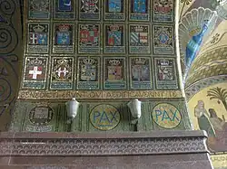 La crypte de l'église abbatiale reçoit en 1878 une riche décoration de mosaïques réalisée par les artistes de l'école de Beuron.