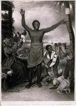 La difficulté à s'affranchir des rapports sociaux anciens dans des sociétés coloniales où les anciens esclaves représentaient parfois 85 % de la population totale, tout comme la complexité de mise en œuvre de la législation sur l'apprentissage et les fortes tensions sociales (émeutes, marronnage) poussèrent le Colonial office (en) à avancer le terme de ce système transitoire[39]. Le , l’émancipation des deux catégories d'esclaves, urbains et agricoles, fut proclamée, deux ans avant l'échéance prévue par le texte de 1833 pour les esclaves des plantations.